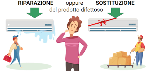 In caso di difetto di conformità del bene, il consumatore ha diritto al ripristino della conformità, o a ricevere una riduzione proporzionale del prezzo, o alla risoluzione del contratto.